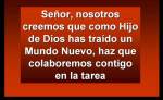 Señor, haz de mi un instrumento de tu paz. Que allá donde hay odio, yo ponga el amor. Que allá donde hay ofensa, yo ponga el perdón. Que allá donde hay discordia, yo ponga la unión. Que allá donde hay error, yo ponga la verdad. Que allá donde hay duda, yo ponga la Fe. Que allá donde hay desesperación, yo ponga la esperanza. Que allá donde hay tinieblas, yo ponga la luz. Que allá donde hay tristeza, yo ponga la alegría. Oh Señor, que yo no busque tanto ser consolado, cuanto consolar, ser comprendido, cuanto comprender, ser amado, cuanto amar. Porque es dándose como se recibe, es olvidándose de sí mismo como uno se encuentra a sí mismo, es perdonando, como se es perdonado, es muriendo como se resucita a la vida eterna.Sociales